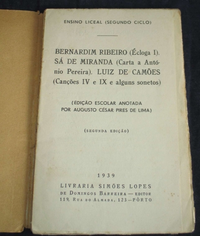 Edição Escolar anotada por Augusto César Pires de Lima. Ensino Liceal (Segundo Ciclo).