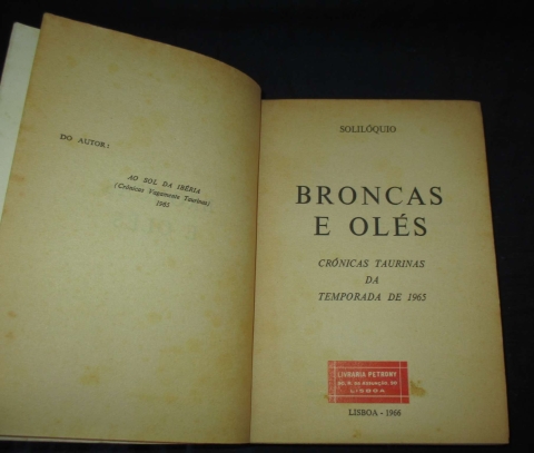 Solilóquio pseudónimo de João Cristóvão Moreira conta-nos histórias da temporada taurina de 1965, triunfos ou não pelas Praças de Toiros de Campo Pequeno, Madrid, Almeria, Bilbau, Arruda dos Vinhos, Santarém , Cascais, Figueira da Foz, entre outras.