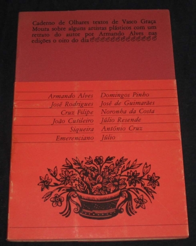Caderno de Olhares textos de Vasco Graça Moura sobre alguns artistas plásticos com um retrato do autor por Armando Alves nas edições o oiro do dia.