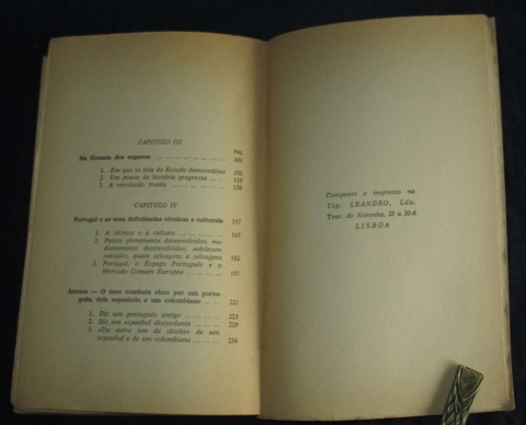 Do índice: I - Os paradoxos da vida contemporânea; II - Em que se fala de autocracia e da teoria do ressentimento; III - Na floresta dos enganos; IV - Portugal e as suas deficiências técnicas e culturais. Anexos - O meu combate visto por um português, dois espanhóis e um columbiano.