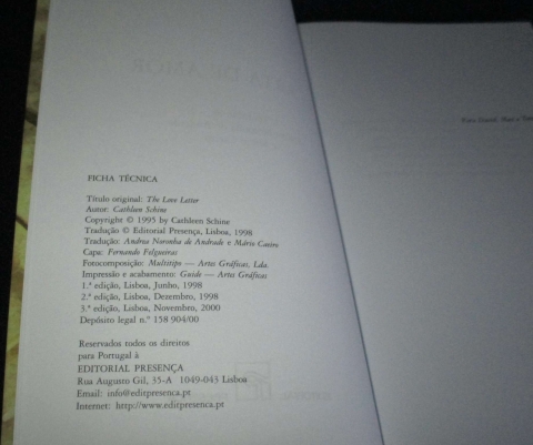 Tradução de Andrea Noronha de Andrade e Mário Caeiro. Divorciada, mãe de uma filha de onze anos, a cativante Helen regressa à pequena cidade onde cresceu, na costa atlântica dos Estados Unidos, e adquire uma livraria que pinta de rosa. Tem tudo para se sentir realizada, tudo lhe corre segundo uma ordem comandada por ela, segura de si no seu jogo de sedução, uma livraria que é capaz de manipular os seus clientes fazendo-os comprar os livros que ela lhes quer vender... Contudo, num dia de Verão, uma misteriosa carta de amor vem perturbar a serenidade do mundo de Helen. Subjugada pelo poderoso feitiço das palavras enamora-se irremediavelmente, e pouco convenientemente, por um estudante de vinte anos, Johnny, seu empregado naquele Verão. Cathleen Schine fez deste livro uma deliciosa e irreverente comédia de costumes, numa escrita desenvolta na coloquialidade dos diálogos, sem deixar nada ao acaso.