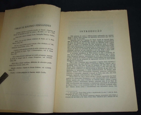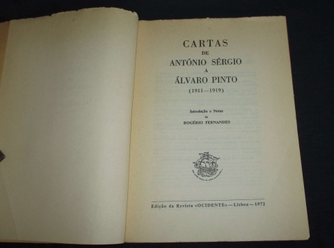 Assinatura de posse. (1911-1919). Capa de brochura. Introdução e Notas por Rogério Fernandes. As «Cartas de António Sérgio a Álvaro Pinto 1911-1919», Introdução e Notas de Rogério Fernandes (Lisboa, 1972) são um precioso auxiliar crítico que permite compreender melhor a importância da revista «A Águia» (1910) e da «Renascença Portuguesa» (1912), autênticos alfobres dos principais movimentos intelectuais do século XX. Aí coexistiram em determinado momento os idealistas e os modernistas, os espiritualistas e os transcendentalistas, os poetas e os intelectuais políticos que acreditavam na recuperação das energias do país, numa fase nova da sua vida. Ao estudarmos o saudosismo, os dois modernismos (Orpheu e Presença), o impulso democrático-social (Seara Nova), o neorrealismo e a sua superação, a heterodoxia dos ensaístas (desde Joaquim de Carvalho e Sílvio Lima a Eduardo Lourenço), a rica poesia do século XX, até o surrealismo (Cesariny e ONeill) podemos encontrar uma raíz multímoda neste impulso entusiasmante da «Renascença»! E Álvaro Pinto (1889-1957) merece uma referência especial, como verdadeiro animador desse movimento fundamental.