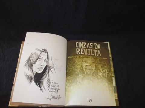Exemplar valorizado por dedicatória manuscrita, acompanhada de desenho original do desenhador, assinado Jhion. Autografado.
