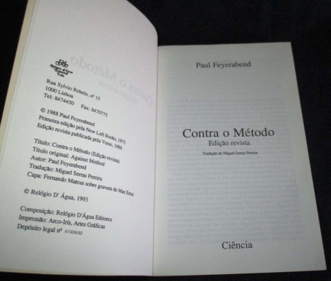 Paul Feyerabend é historiador e filósofo das ciências, leccionando na Universidade de Berkeley, na Califórnia e no Instituto de Tecnologia de Zurique. (...)"