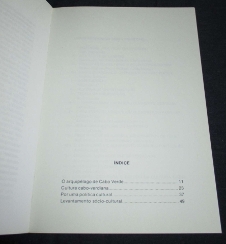Do índice: O arquipélago de Cabo Verde; Cultura cabo-verdiana; Por uma política cultural; Levantamento sócio-cultural.
