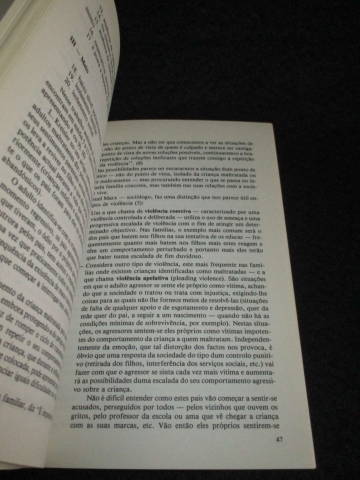 Assinatura de posse. Capa de brochura. Ilustrada. Secção de Pediatria Social da Sociedade Portuguesa de Pediatria. Capa Miguel Horta. Trabalhos apresentados na reunião de Fevereiro de 1986 e textos do Centro de Estudos Judiciários e Instituto de Apoio à Criança.