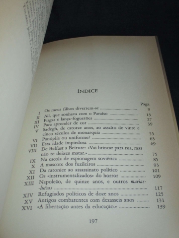 "Após terem aprendido aprendido a desarmar os engenhos nos campos de treino, alguns deles «divertiam-se» a pôr as lições em prática nas estradas do sul do Líbano. O «jogo» consistia em sinalizar as minas colocadas no dia anterior pelos israelitas infiltrados, ou pelas milícias cristãs do major Haddad, e recuperá-las discretamente. A seguir, as crianças, se sobrevivessem, faziam-nas explodir no mar vizinho. A pesca era então milagrosa, quando dezenas de peixes mortos surgiam a flutuar..."´