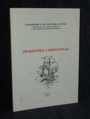 Capa de brochura. Da Asociación de Cervantistas (Espanha) e da Associação dos Arqueólogos Portugueses. Tiragem de 200 exemplares fora do mercado. Na capa desenho ampliado de um navio que figura a pp. 64 do livro Las mujeres de Cervantes, por José Sánchez Rojás e alusivo à Espanhola Inglesa.