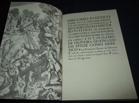 Discurso Patético sobre as calamidades presentes sucedidas em Portugal / Seguimento do discurso patético, ou resposta às objecções e aos murmúrios que esse escrito sobre si atraiu em Lisboa / O Cavaleiro de Oliveira queimado em efígie como herético. Conforme, respectivamente, às edições de 1756, 1757 e 1762.