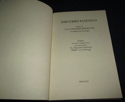 Livro: Discurso Patético sobre as Calamidades presentes sucedidas em Portugal