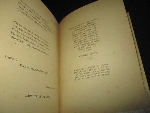 Segunda edição bastante rara do primeiro livro de poemas de Mário de Sá-Carneiro, publicado originalmente em 1914.