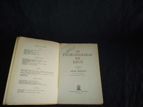 Assinatura de posse. Capa de brochura plastificada. Desenhos de Manuel Ribeiro Pavia. As Encruzilhadas de Deus, livro tido como a obra-prima de José Régio, onde poeta atingiu os momentos mais altos da sua poesia, torrencial e reflexiva, lírica e dramática ao mesmo tempo.