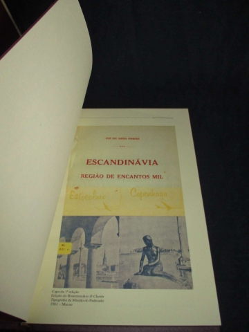 Encadernação de capa dura. «O nosso sempre recordado Adé, notável poeta macaense e incansável cultor e divulgador do patuá, escreveu o seu primeiro livro em prosa na sequência de uma viagem à Escandinávia, a convite da companhia aérea SAS, em Outubro de 1960. Era então chefe de redacção do jornal católico “O Clarim”. Juntamente com ele, seguiram nessa viagem promocional dois jornalistas de Hong Kong, dois da Índia, um da Indonésia, dois da Malásia, dois do Paquistão, dois australianos e, a partir de Tóquio, dez japoneses. As suas crónicas foram reunidas em livro que o próprio “O Clarim” publicou em 1961. Chamou-se “Escandinávia – Região de Encantos Mil”.