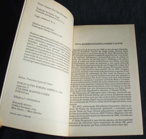 Inicialmente publicado em 1920, Este Lado do Paraíso logo projectou o seu autor para o reconhecimento internacional.