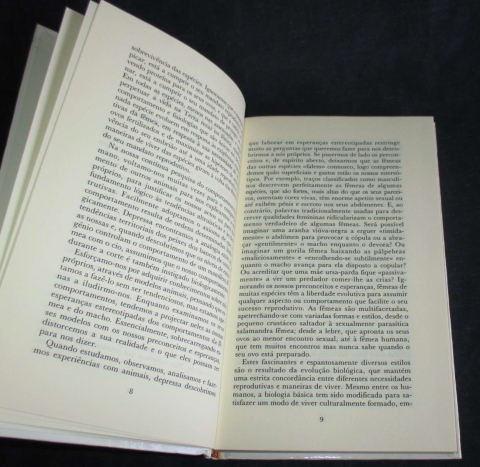Capa dura. Do índice: Sobrevivência das espécies; Onde acabam as fêmeas e começam os machos; Transição; O momento ideal é tudo; No calor do estro; Um milhão de maneiras de apanhar um macho; O embrião tirano; O mito do maternalismo; Novos comportamentos, novas escolhas.