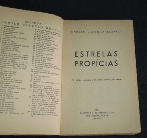 Estrelas Propícias é título que não pode faltar numa biblioteca ideal de Camilo Castelo Branco. Não só por ser um texto onde avulta uma notória agilidade discursiva, mas também por ser uma novela que superiormente nos representa os problemas sociais que afectaram a sociedade oitocentista portuguesa. Nesta obra temos uma intriga urdida em torno de um conflito basilar omnipresente nas tramas romanescas de Camilo e que é o conflito consequente da imposição de matrimónios planeados com vista à obtenção de interesses patrimoniais ou com o intuito de alcançar uma promoção social.