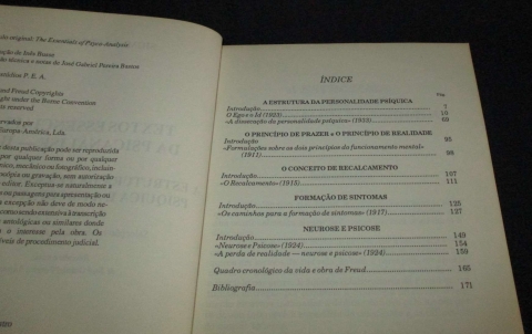 Neste volume incluem-se os estudos "O Ego e o Id", "A Dissecação da Personalidade Psíquica", "Formulações Sobre os Dois Princípios do Funcionamento Mental", "O Recalcamento", "As Vias para a Formação de Sintomas", "Neurose e Psicose" e "A Perda da Realidade na Neurose e na Psicose".