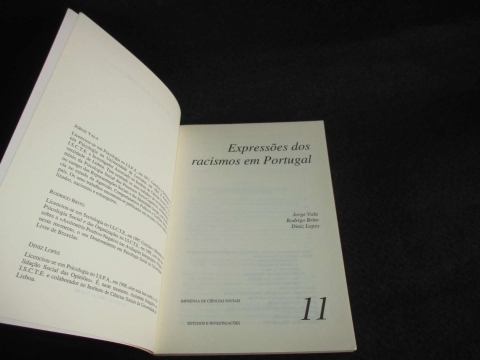 Capa de brochura. Ilustrado. É comum pensar que a especificidade da nossa cultura e da nossa história colonial, a fácil miscigenação de portugueses com outros povos, o facto de muitos africanos residentes no país serem cidadãos nacionais, ou que o facto da maioria dos imigrantes africanos ser proveniente das antigas colónias, contribuiria para a especificidade de um eventual racismo em Portugal. No fundo, esta ideia é ainda uma consequência da ideologia «luso-tropicalista» e é alimentada por actores políticos de diferentes quadrantes. Ora, o conjunto dos resultados da presente pesquisa mostra que as crenças racistas se organizam em Portugal de forma semelhante à de outros países europeus; que os factores que estão na sua génese não são, significativamente, diferentes daqueles que subjazem ao racismo subtil ou flagrante noutros países.