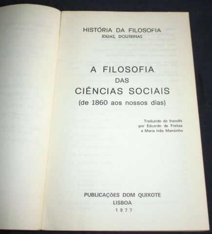 Livro: A Filosofia das Ciências Sociais de 1860 aos nossos dias