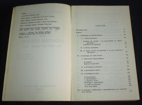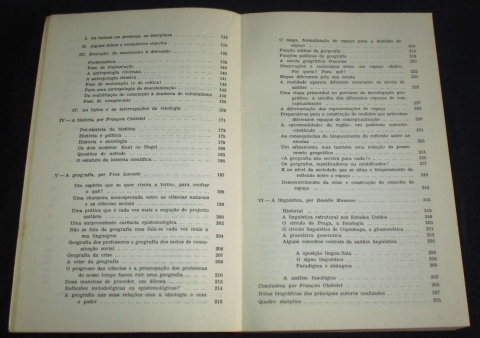 Do índice: A psicologia por Michel Bernard; A sociologia por André Akoun; A etnologia, mistificações e desmistificações por Louis-Vincent Thomas; A história por François Châtelet; A geografia por Yves Lacoste; A linguística por Danièle Manesse.