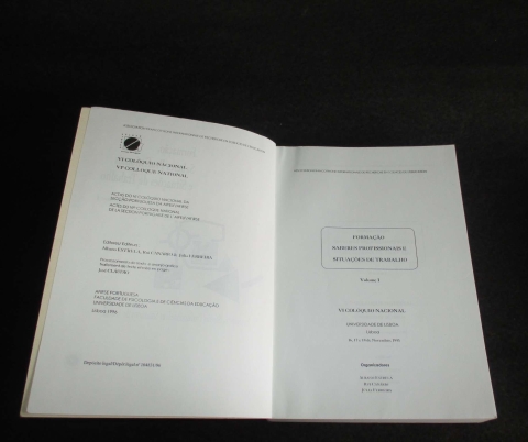 VI Colóquio Nacional. Universidade de Lisboa, Lisboa 16, 17 e 18 de Novembro 1995. Formation, savoirs professionnels et situations de travail. Capa de brochura. Edição bilingue português / francês.