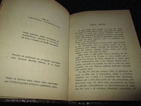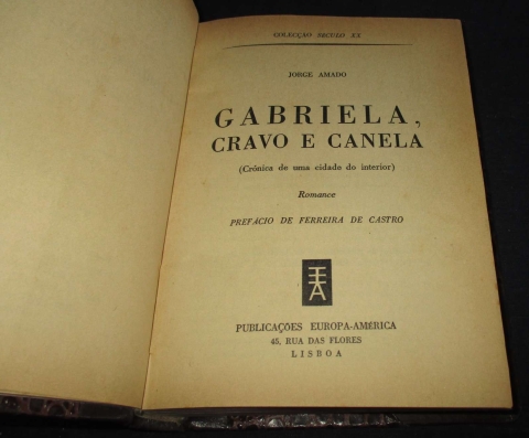 Gabriela, Cravo e Canela é um dos mais célebres romances do escritor brasileiro Jorge Amado sebdi esta a 1ª edição portuguesa.