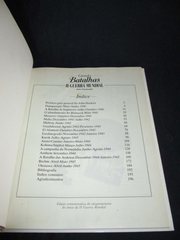Prefácio do General Sir John Hackett. Edição comemorativa do cinquentenário do início da II Guerra Mundial. Já passou quase meio século desde que terminou a Segunda Guerra Mundial, mas o interesse pelo seu curso e condução não declina, e as circunstâncias combinam-se para encorajar o seu estudo ulterior. Apesar de terem existido muitas guerras no nosso tempo, não houve recentemente nenhum conflito a nível mundial, e o que aconteceu na última Guerra Mundial pode agora ser visto numa perspectiva mais clara e verdadeira.