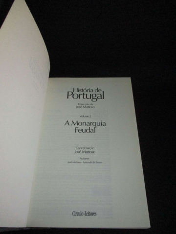 A Monarquia Feudal. Encadernação do editor em capa dura. Depois do impacto da edição da História de Portugal de José Mattoso há vinte anos atrás, o Círculo de Leitores publica esta obra, numa edição especial, e exclusiva, a comemorar a sua chegada ao público leitor português. Grande e referencial síntese - mantém-se a atualidade, a abrangência. Sob direção de José Mattoso, um dos mais prestigiados historiadores portugues, distinguido com o Prémio Pessoa, reúne-se nesta obra uma elite de especialistas e historiadores, entre eles, Armindo de Sousa.
