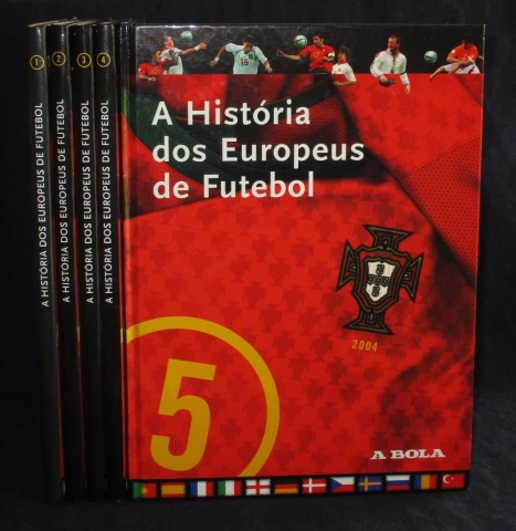 A História dos Europeus de Futebol em 5 volumes. Inclui comentários, fichas, relatos, países, onze ideal de cada prova, todos os Portugueses, as estrelas. Ilustrado.