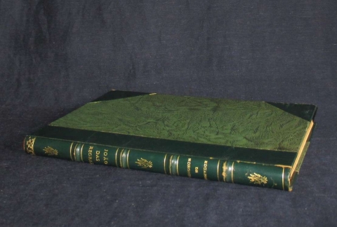 Encadernação de época com lombada e cantos em pele, títulos e ferros gravados a ouro na lombada. Preserva a capa original da brochura. Folha de guarda com rasgo no canto superior direito.