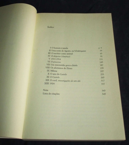 Tradução de Ernesto Sampaio. Kafka - viagem às profundezas de uma alma é um hino à leitura, à interpretação literária e à confusão dos géneros (entre ensaio e biografia, entre poesia e prosa). Saber e sabor iluminam todo este imenso ensaio que, mais do que acompanhar os traços da vida, sublinha o que deles resulta. (in Ler, João Paulo Cotrim)