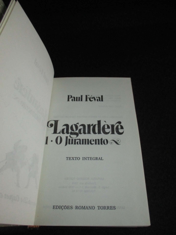 Assinatura de posse. Texto Integral. Exemplar com encadernação inteira em pele com ferros marcados a ouro na lombada. 3 volumes encadernados num único tomo. Tradução de Aurora Rodrigues (Dora). Ilustrados no texto com gravuras. Paul Henri Corentin Féval, pai (29 de Setembro de 1816 - 8 de Março de 1887) foi um romancista e dramaturgo francês e autor de romances populares capa e espada. É sobretudo conhecido como um dos pais do moderno romance policial. O seu romance Jean Diable (1862) pode ser considerado o primeiro romance moderno de ficção de detectives. A sua obra-prima foi Les Habits Noirs (1863-1875), uma saga criminosa composta por onze romances. Depois de perder a sua fortuna num escândalo financeiro, Féval tornou-se um cristão renascido, deixou de escrever thrillers de crime, e começou a escrever romances religiosos.
