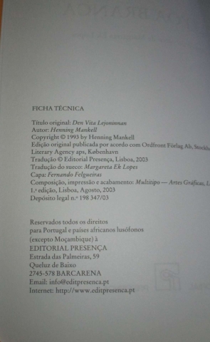 Mankell, um dos autores máximos da era do thriller volta a criar um suspense incrível neste livro premiado com o Dolg Dagger para Melhor Romance Policial do Ano. Em 1992, uma dona de casa sueca, membro da Igreja Metodista é brutalmente assassinada e o inspector Kurt Wallander, juntamente com a sua equipa, são recrutados para investigar este estranho caso. Porém, a teia de acontecimentos que desencadeou este assassínio teve origem na África do Sul, onde Nelson Mandela travou uma luta incansável pela liberdade, pondo fim ao regime do Apartheid. A equipa liderada por Wallander vê-se repentinamente enredada numa teia complexa, encabeçada por membros dos serviços secretos da África do Sul e por um ex-agente do KGB concentrados numa missão: impedir que Nelson Mandela suba ao poder.
