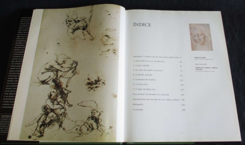 Pintor, Inventor, Visionário, Matemático, Filósofo, Engenheiro. Ilustrado com reprodução das obras de Leonardo da Vinci, fotografias de pinturas, de inventos, de desenhos, e.o.