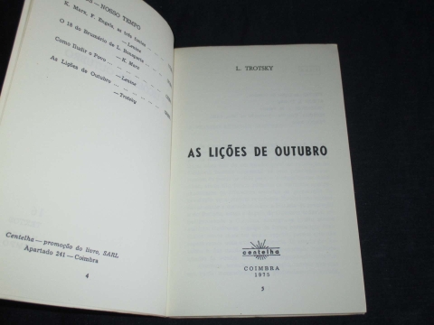 As Lições de Outubro, acabadas de escrever em 1924, constituem um documento importante para ajudar a compreender na sua riqueza os acontecimentos que precederam e se desencadearam com a Revolução de Outubro de 1917. (...) Eis pois nestas páginas um contributo significativo para a reconstituição histórica duma época que se veio a revelar decisiva no desenvolvimento das sociedades.