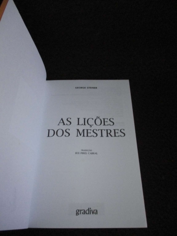 O encontro pessoal entre mestre e discípulo é o tema de George Steiner neste livro absolutamente fascinante, uma sólida reflexão sobre a interacção infinitamente complexa e subtil de poder, confiança e paixão que marca as formas mais profundas de pedagogia. Baseado em conferências que o autor proferiu na Universidade de Harvard, Lições dos Mestres evoca um grande número de figuras exemplares, nomeadamente, Sócrates e Platão, Jesus e os seus discípulos, Virgílio e Dante, Heloísa e Abelardo, Tycho Brahe e Johann Kepler, o Baal Shem Tov, sábios confucionistas e budistas, Edmund Husserl e Martin Heidegger, Nadia Boulanger e Knute Rockne.