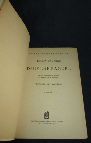 Prefácio de Procópio Ferreira. Capa de Bernardo Marques. Comédia completa em 3 actos divididos em 9 quadros. O enredo gira em torno do diálogo de dois mendigos, um dos quais se torna rico com a actividade de pedinte; faz, ainda, uma crítica social da época. Teatro.