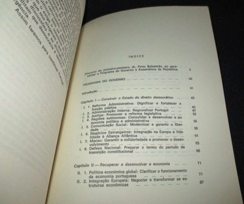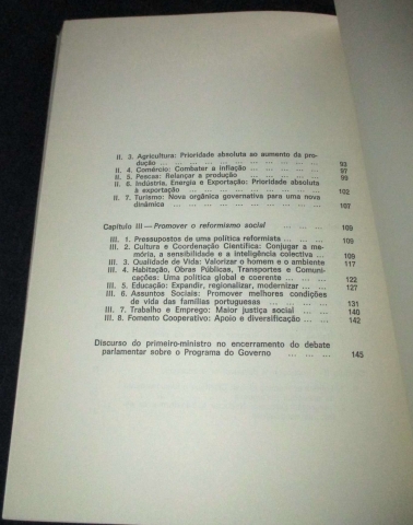 Do índice: Discurso de apresentação do programa à Assembleia da República; Programa do Governo; Introdução; Construir o Estado de direito democrático; Recuperar e desenvolver a economia; Promover o reformismo social; Discurso de encerramento do debate.