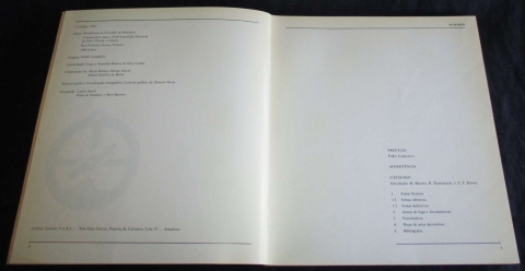 Do índice: Armas Brancas (Armas ofensivas, Armas defensivas); Armas de fogo e Arcobalísticas; Numismática; Peças de Artes Decorativas.