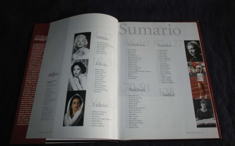 Encadernação capa dura com sobrecapa. 80 Mulheres que marcaram a História: Amália Rodrigues, Marilyn Monroe, Madonna, Diana Spencer, Natália Correia, Maria Barroso, Margaret Thatcher, Edith Piaff, entre muitas outras.