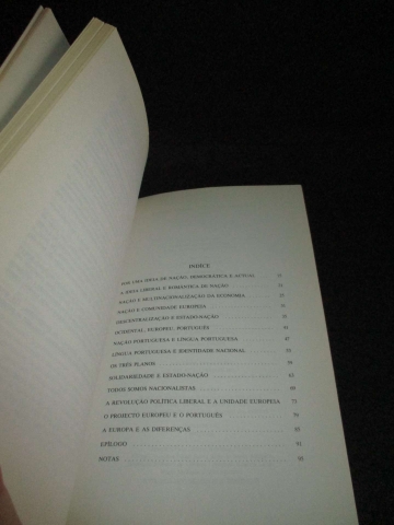 Dedicatória manuscrita. Capa de brochura. Do índice: Por uma ideia de Nação, Democrática e actual A ideia liberal e romântica de nação Nação e multinacionalização da economia Nação e comunidade europeia Descentralização e estado-nação Ocidental, europeu, português Nação portuguesa e língua portuguesa Língua portuguesa e identidade nacional Os três planos Solidariedade e estado-nação Todos somos nacionalistas A revolução política liberal e a unidade europeia O projecto europeu e o português A europa e as diferenças Epílogo Notasquot.