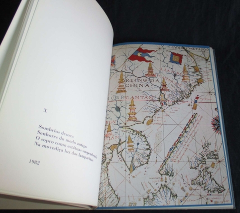 Edição numerada 957/2000. Edição trilingue: português, inglês (Ruth Fainlight) e francês (Joaquim Vital). Obra poética impressa em papel superior e enriquecida com reproduções a cores de cartas geográficas antigas. Edição sob os auspícios do Comissariado para XVII Exposição Europeia de Arte, Ciência e Cultura. Os Descobrimentos Portugueses e a Europa do Renascimento. Direcção Gráfica de Armando Alves.