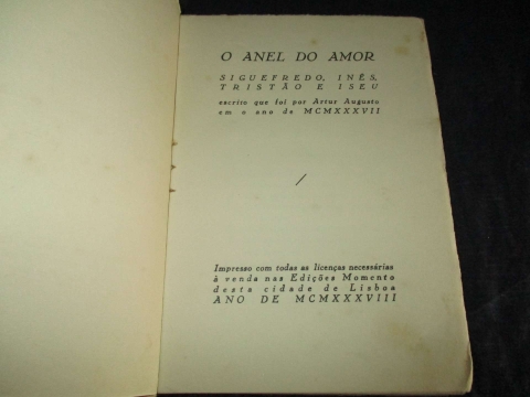 Livro: O Anel do Amor Siguefredo, Inês, Tristão e Iseu