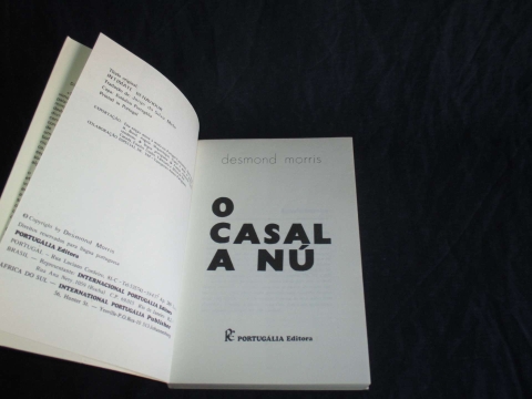 Capa de brochura. Tradução de Jorge da Silva Melo. O Casal a Nu abrange todas as formas de contacto físico entre os seres humanos, da amigável pancadinha nas costas à mais arrebatada expressão de amor maternal, do formal aperto de mão à cópula mais apaixonada. Analisando todas estas formas de comportamentos normais pelo prisma de um zoólogo.