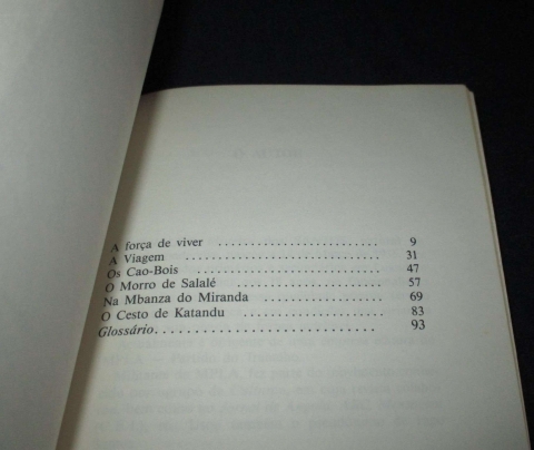 Do índice: A força de viver; A viagem; Os Cao-Bois; O Morro de Salalé; Na Mbanza do Miranda; O Cesto de Katandu; Glossário.