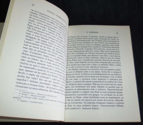 Assim troava a voz de Yannis Kapsis sobre toda a nave, enquanto as ondas furiosas a faziam subir e baixar. Ricocheteava contra as velas triangulares, era ampliada pelo eco e colava-se ao fundo até à carena do baixel, para que toda a tripulação a ouvisse, da popa à proa.!"
