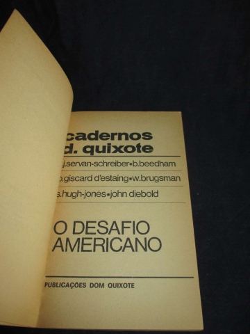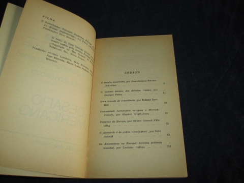 Assinatura de posse. Livro de Bolso. Em que consiste o "Desafio Americano"? Basicamente, poder-se-á dizer que se trata de uma questão de concorrência. O poderio tecnológico, econômico e financeiro americano é hoje o maior do mundo, facto que não constitui qualquer novidade. Surpreendente, isso sim, é verificar-se que o terceiro poderio económico mundial é constituído pela presença Americana da Europa. Que resposta poderão dar os europeus a tal "desafio"?. É esta a questão em debate.