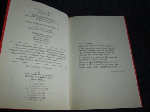 Adaptação de um dos clássicos da literatura espiritual. Capa de brochura. Traduzido e adaptado por Paulo Coelho. "Eu achava que já tinha pensado tudo o que precisava de pensar a respeito do Amor, quando O Dom Supremo me veio parar às mãos. (…) A partir do momento em que li as palavras deste livro e tentei pôr em prática os seus ensinamentos, a minha vida mudou muito." Paulo Coelho.