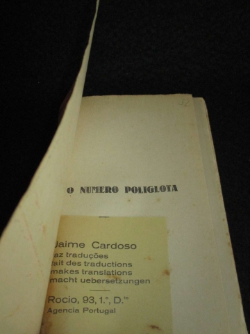 Capa de brochura. Obra quadrilingue com texto em português, francês, inglês e alemão. Com anúncios comerciais nas badanas.