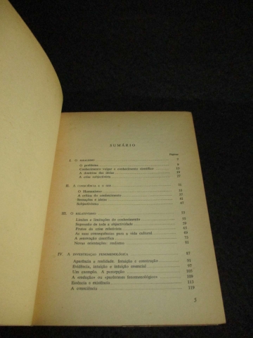 Capa de brochura. Tradução do espanhol por Maria Angelina Ródo. Do Sumário: O Idealismo; A Consciência e o ser; O Relativismo; A Investigação Fenomenológica; Verdade e Objectividade.